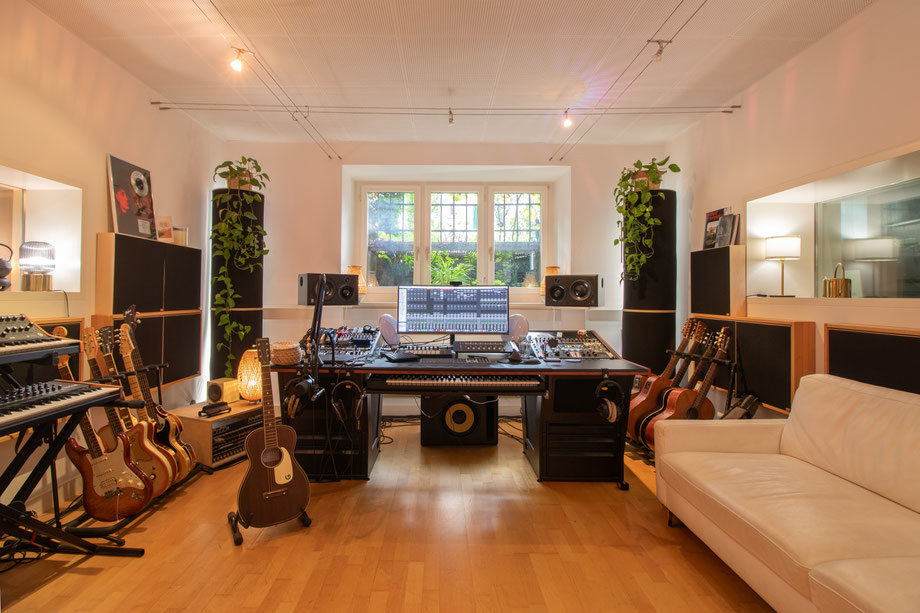 Our studio is quietly located in central Zurich, offering three flexible control rooms that double as recording spaces. You'll also find a cozy break room with great coffee and a peaceful garden.